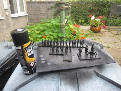 The Russian Cossacks prepare to attack the British cavalry thence pinning them in position for their Hussars to charge - but ! - they roll a double '6' ! - a blunder ! and have to move to their left one move - taking them off the table edge ! .